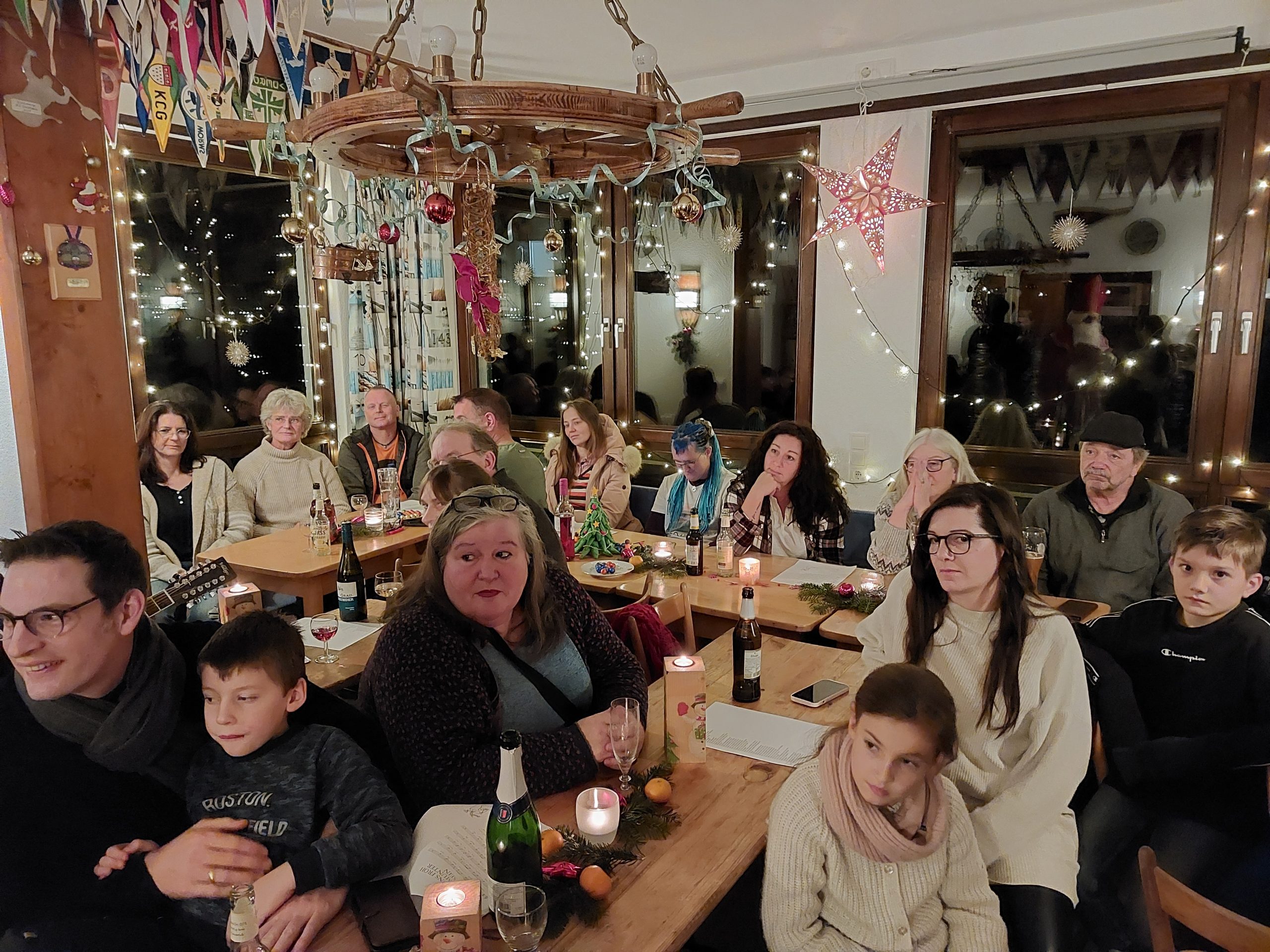 Die Kanuten vom Kanu-Club Unkel e.V. (KCU) erhielten in ihrem adventlich beleuchteten Clubheim am ersten Wochenende im Dezember Besuch vom Nikolaus und seinem Knecht Ruprecht. Dort hatten sich auf Einladung des KCU-Vorstandes um Harald Mundus und Anja Saß ca. 50 Erwachsene, Jugendliche und Kinder versammelt, um den Abend mit Gesang, Paddel-Auszeichnungen, einem leckeren, von den Mitgliedern selbst zubereiteten Buffet sowie einer ausgelassenen Feier zu verbringen. Die Kanuten begrüßten Nikolaus mit Liedern und Musik einer kleinen Combo. Der heilige Mann zeigte sich sehr gut über die Kanuten und den Verein informiert. Im Allgemeinen war er sehr zufrieden mit den Wassersportlern. Bei einigen musste er aber feststellen, dass es noch Potenzial nach oben gebe. Er mahnte, das Lernen für die Schule nicht zu vernachlässigen, sich auch nicht zu sehr vom Handy ablenken zu lassen, wenn es um Schule und das Paddeltraining gehe oder gar zu oft das Aufräumen zuhause den Eltern zu überlassen. Doch er sah alle auf gutem Wege und beschenkte daher Kinder und Jugendliche mit prall gefüllten Tüten.